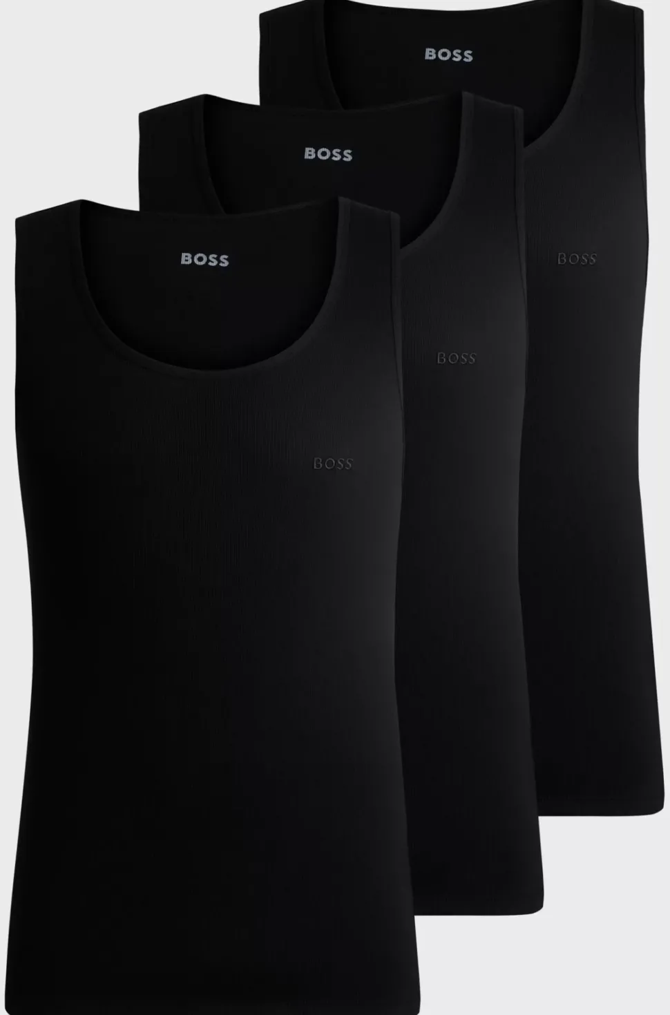 Kolmen pakkaus hihattomia Boss toppeja. Rinnassa brodeerattu BOSS logo.
