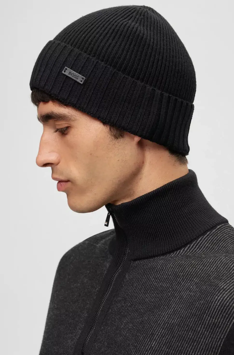 Lämmin Boss ribbipipo 100% neitsytvillaa. Käänteessä logo.