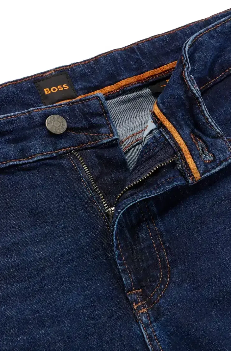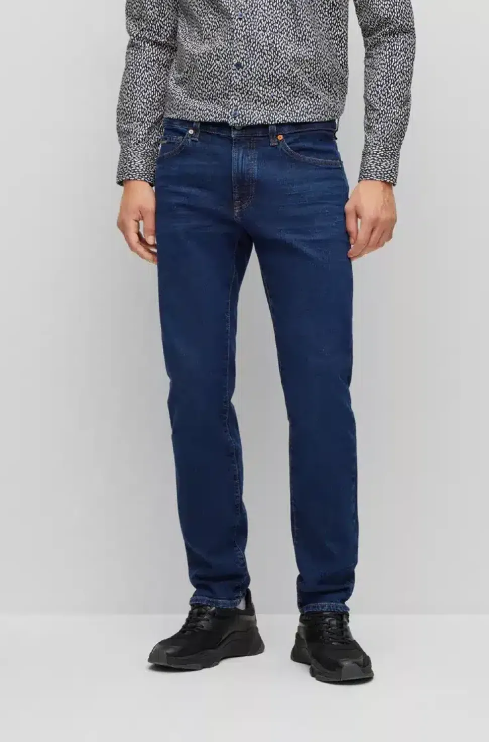 Miesten farkut. Hyvät farkut ovat yksi vaatekaapin kulmakivistä. Boss farkuissa on tyylikäs sininen farkkupesu.