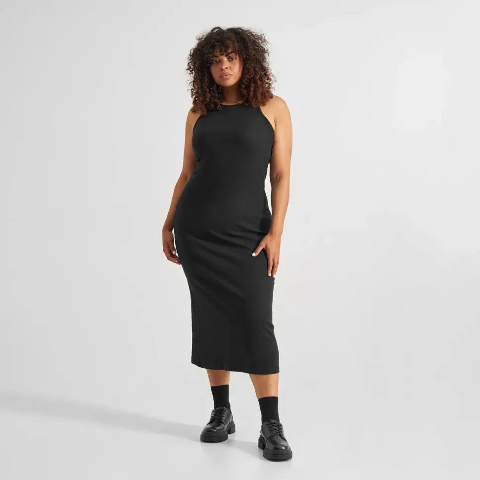 Tyköistuva Dedicated ribbimekko Fairtrade -puuvillaa.