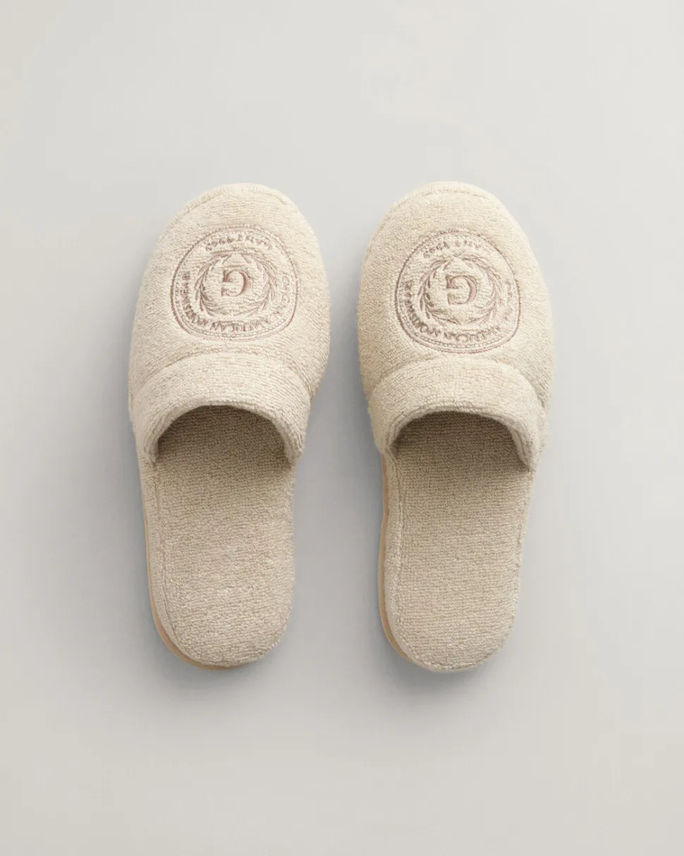 Ylellisen pehmeät Gant Unisex fit tohvelit. Graafinen Crest Shield -kirjailu. Pistokasmalli.