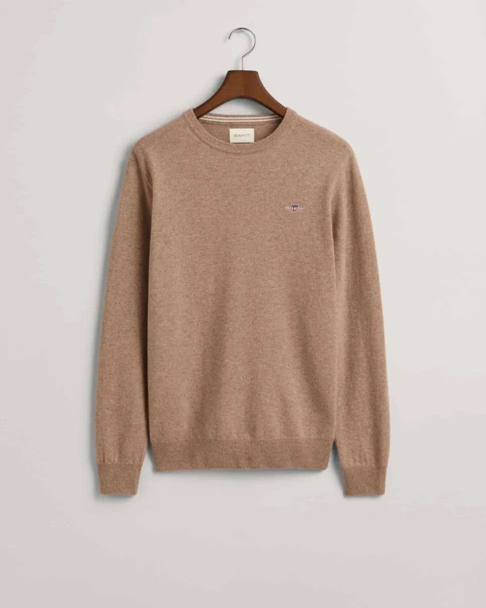 Erittäin hienosta lampaanvillasta valmistettu Gant neulepusero. Ajattomassa neuleessa on pyöreä pääntie sekä brodeerattu Gant logo rinnassa.