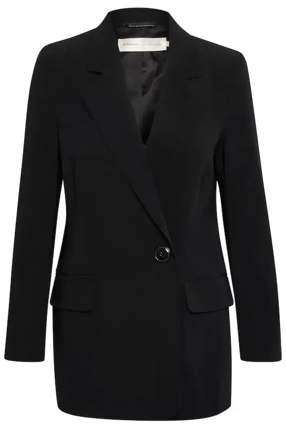 Tyylikäs musta InWear blazer. Blazerissa on kaunis leikkuas jossa viisto, yksinapillinen kiinnitys. Sivutaskut. Vuori.