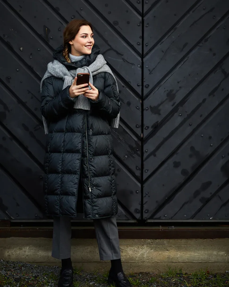 Ihana Joutsen Essi kevytuntuvatakki on saanut inspiraationsa Kulkuri -torkkupeitosta. kevyt, lämmin hupullinen kevytuntuvatakki, jonka vetoketjun alla on leveä suojaava tuulilista. Suoralinjaisessa ja polvipituisessa takissa on mukavan väljä mitoitus ja kaunis tikkaus.