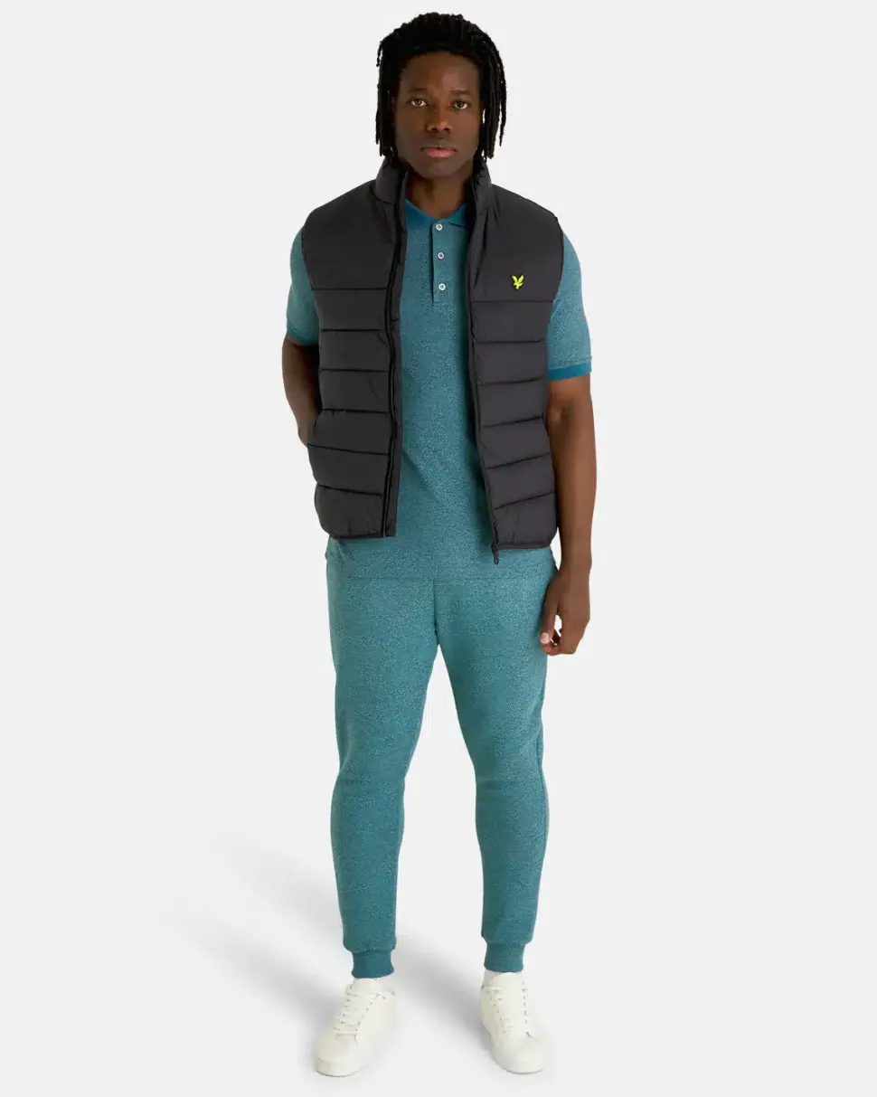 Kevyesti topattu Lyle & Scott tikkiliivi. Liivissä on vetoketjukiinnitys, sivutaskut sekä logo rinnassa.