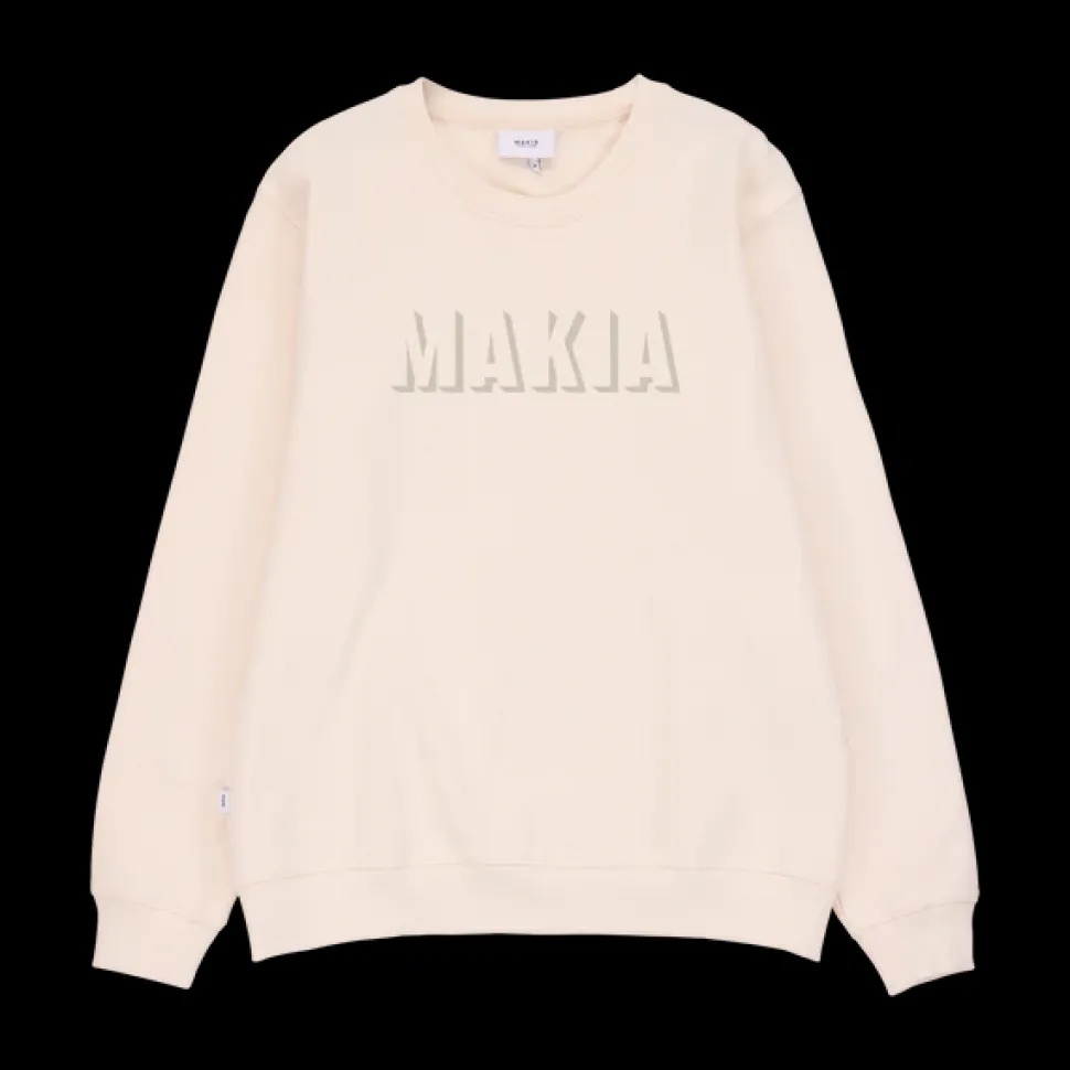 Luonnonvalkoinen Makia collegepaita luomupuuvillaa.