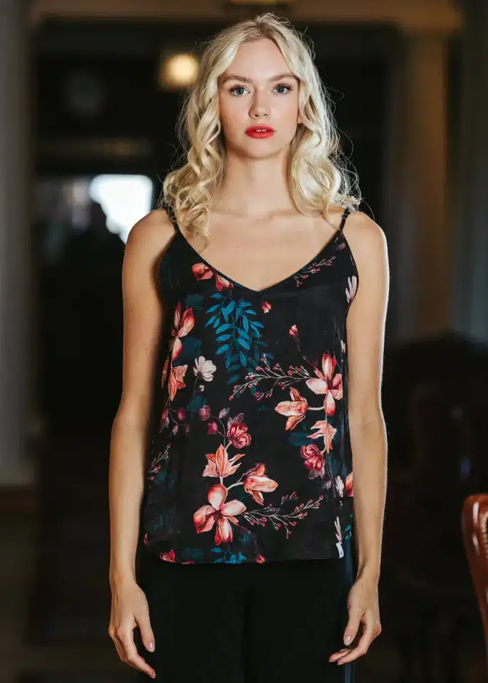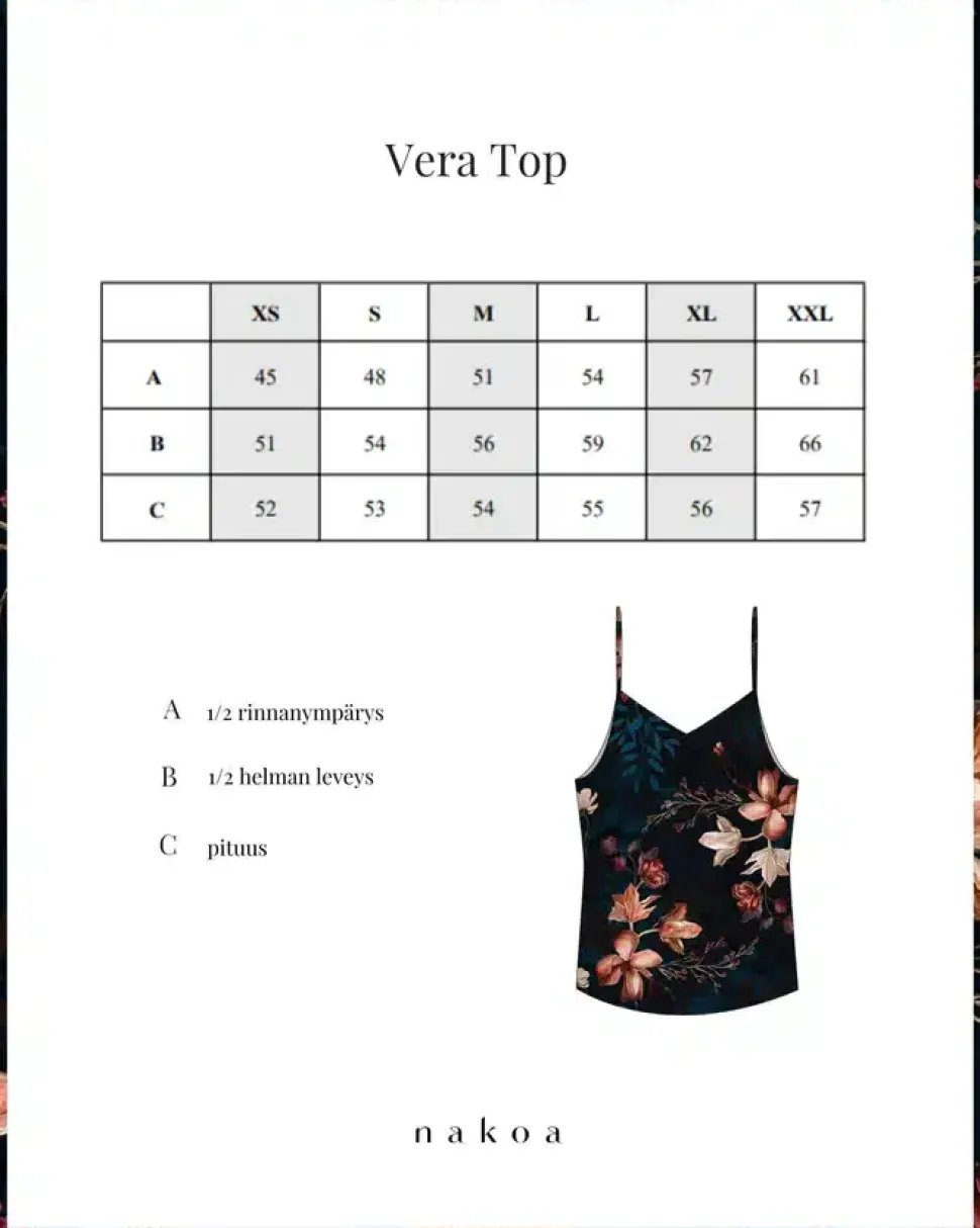 Upea Nakoa spagettiolkaintoppi Versailles -kuosissa.