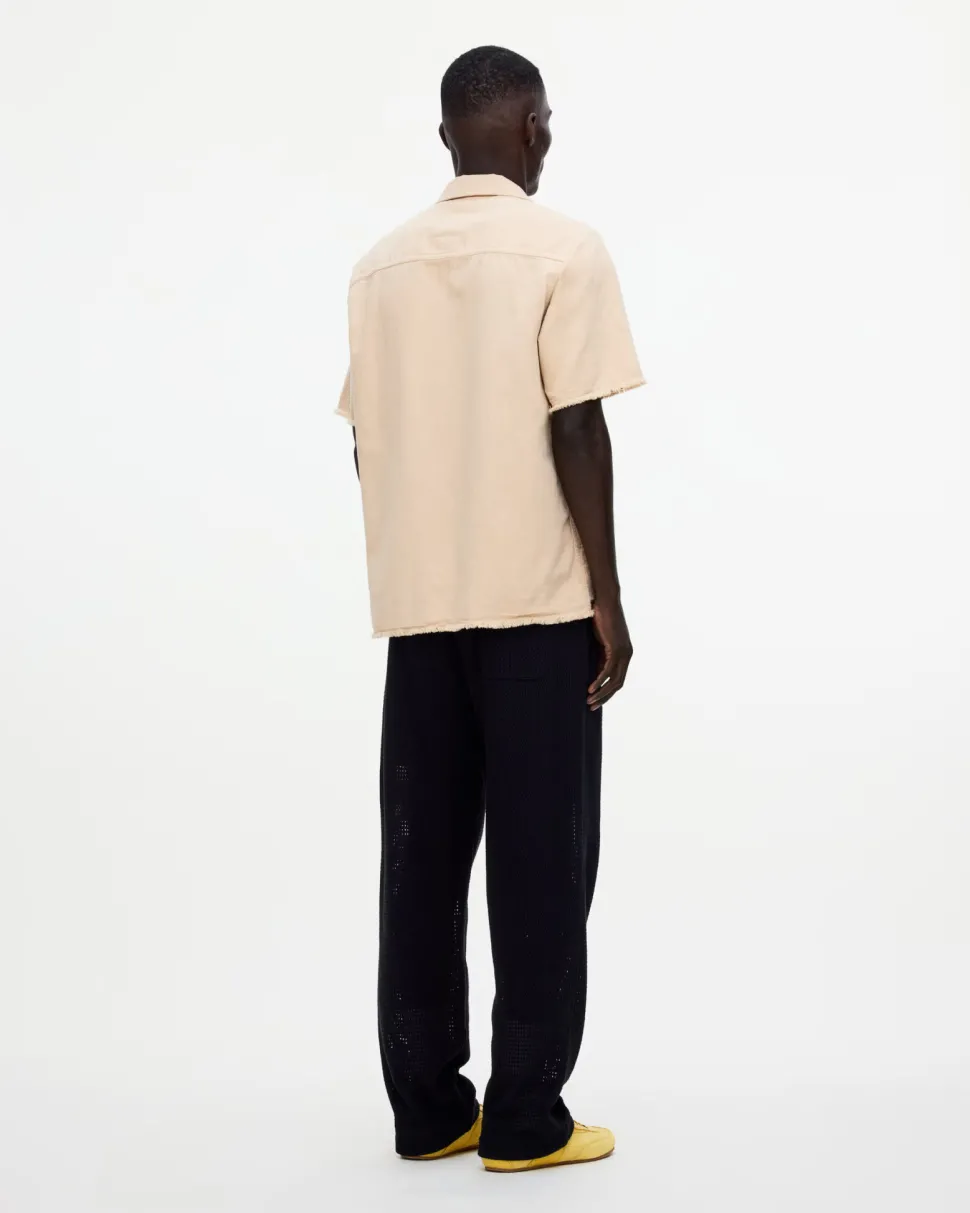 Rento OAS resort -paita puuvillacanvasta. Rennot raakaleikatut helmat.