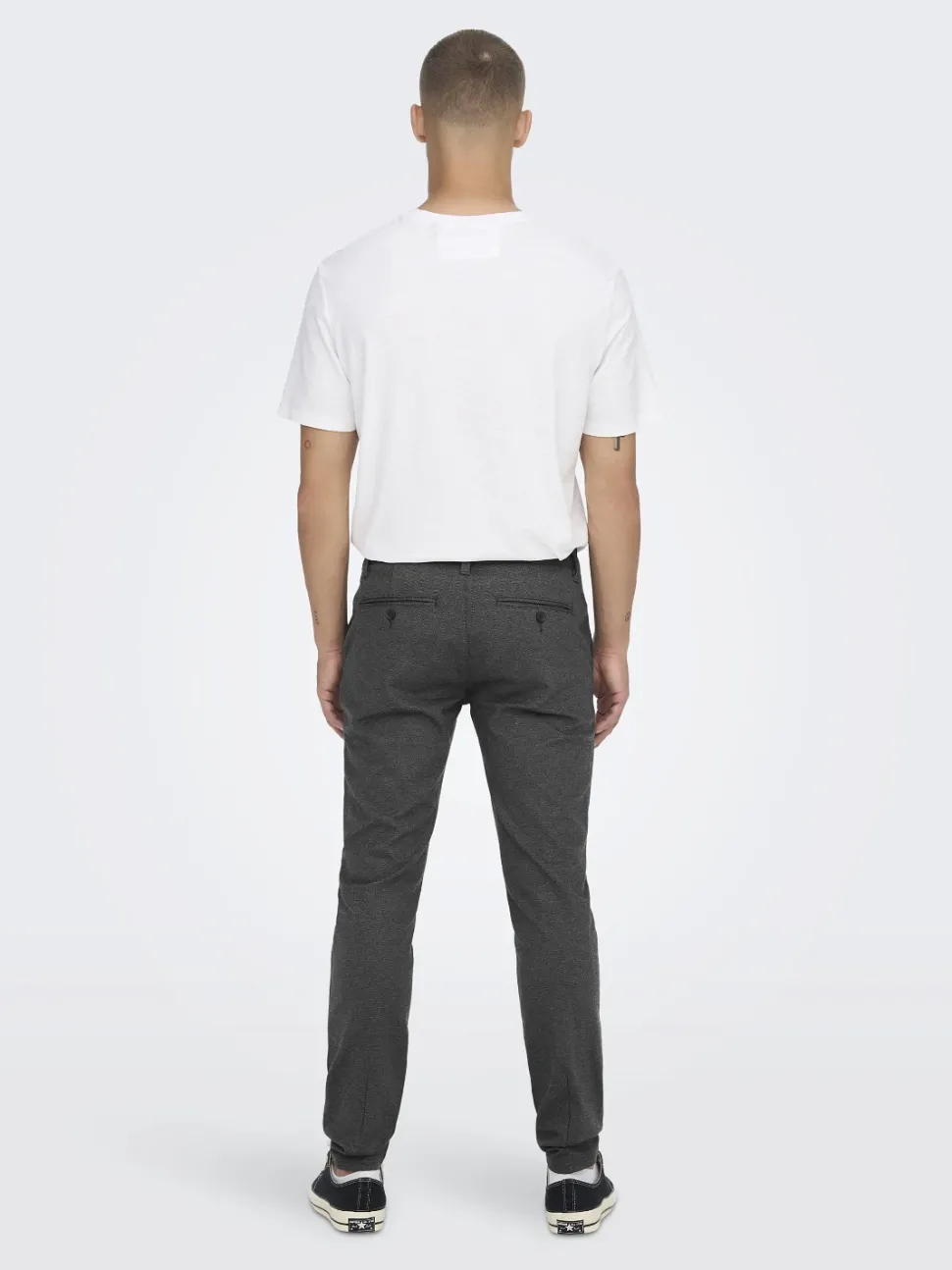Siistit Only & Sons slim fit -housut. Housuissa on miellyttävän joustava materiaali, kapeat lahkeet, sivutaskut sekä napilliset takataskut. Housut sopivat loistavasti niin arkeen kuin työhön.