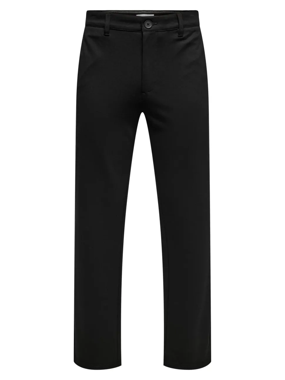 Siistit Only & Sons regular fit -housut. Housuissa on miellyttävän joustava materiaali, sivutaskut sekä napilliset takataskut. Housut sopivat loistavasti niin arkeen kuin työhön.