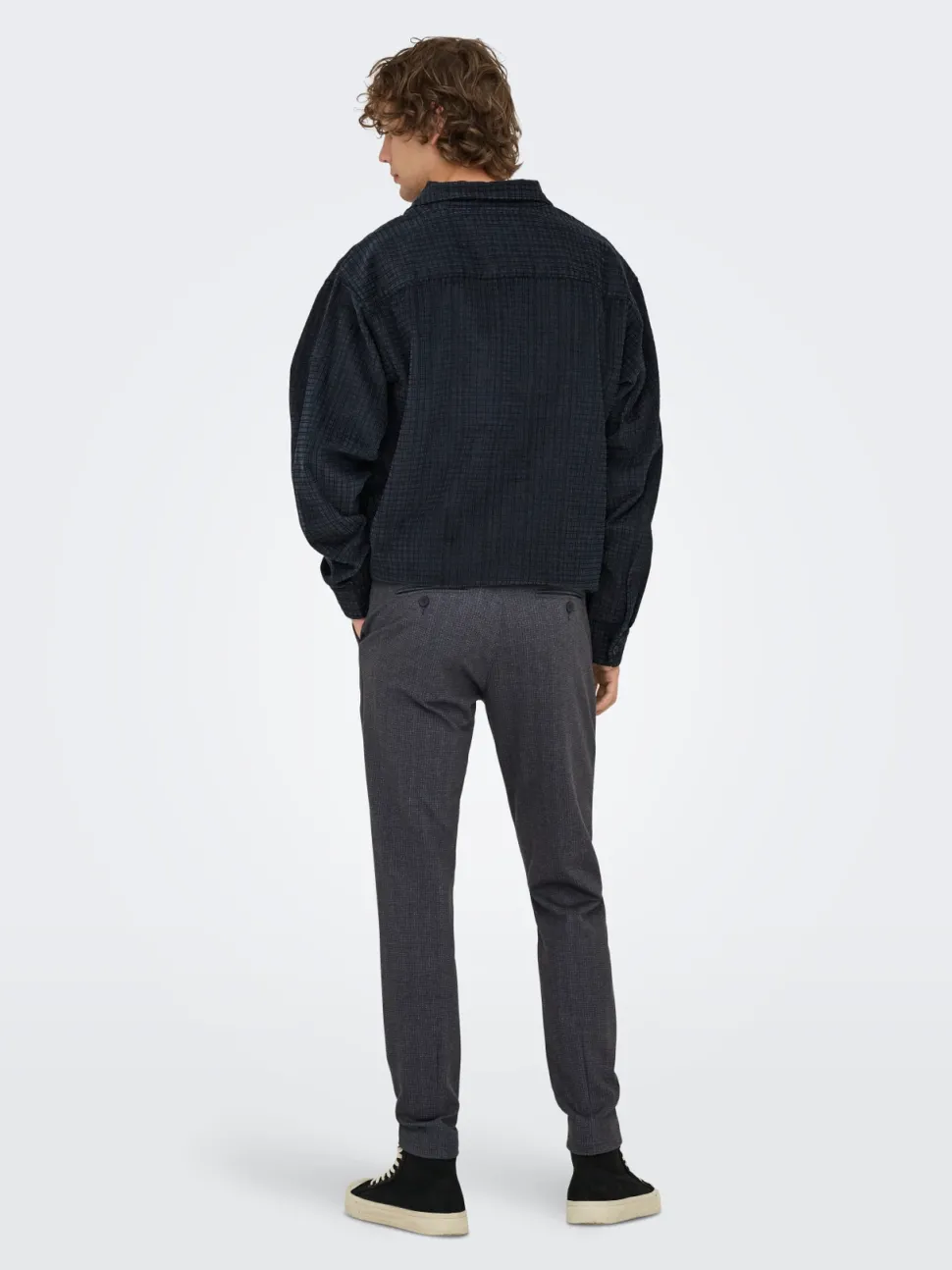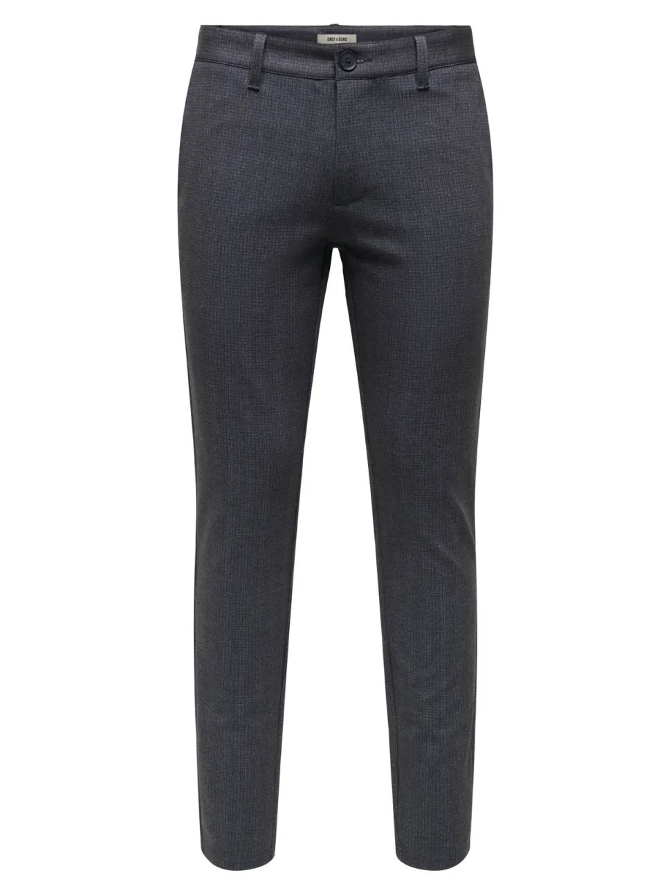 Siistit Only & Sons slim fit -housut. Housuissa on miellyttävän joustava materiaali, kapeat lahkeet, sivutaskut sekä napilliset takataskut. Housut sopivat loistavasti niin arkeen kuin työhön.