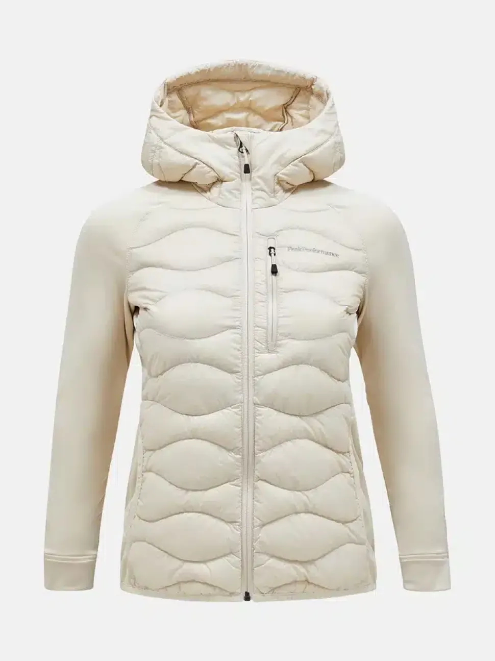 Peak Performance Helium Hybrid takki on miellyttävä kombinaatio lämpimästä kevytuntuvasta ja joustavasta jerseystä. Mainio sellaisenaan tai kerrospukeutumisessa välitakkina.