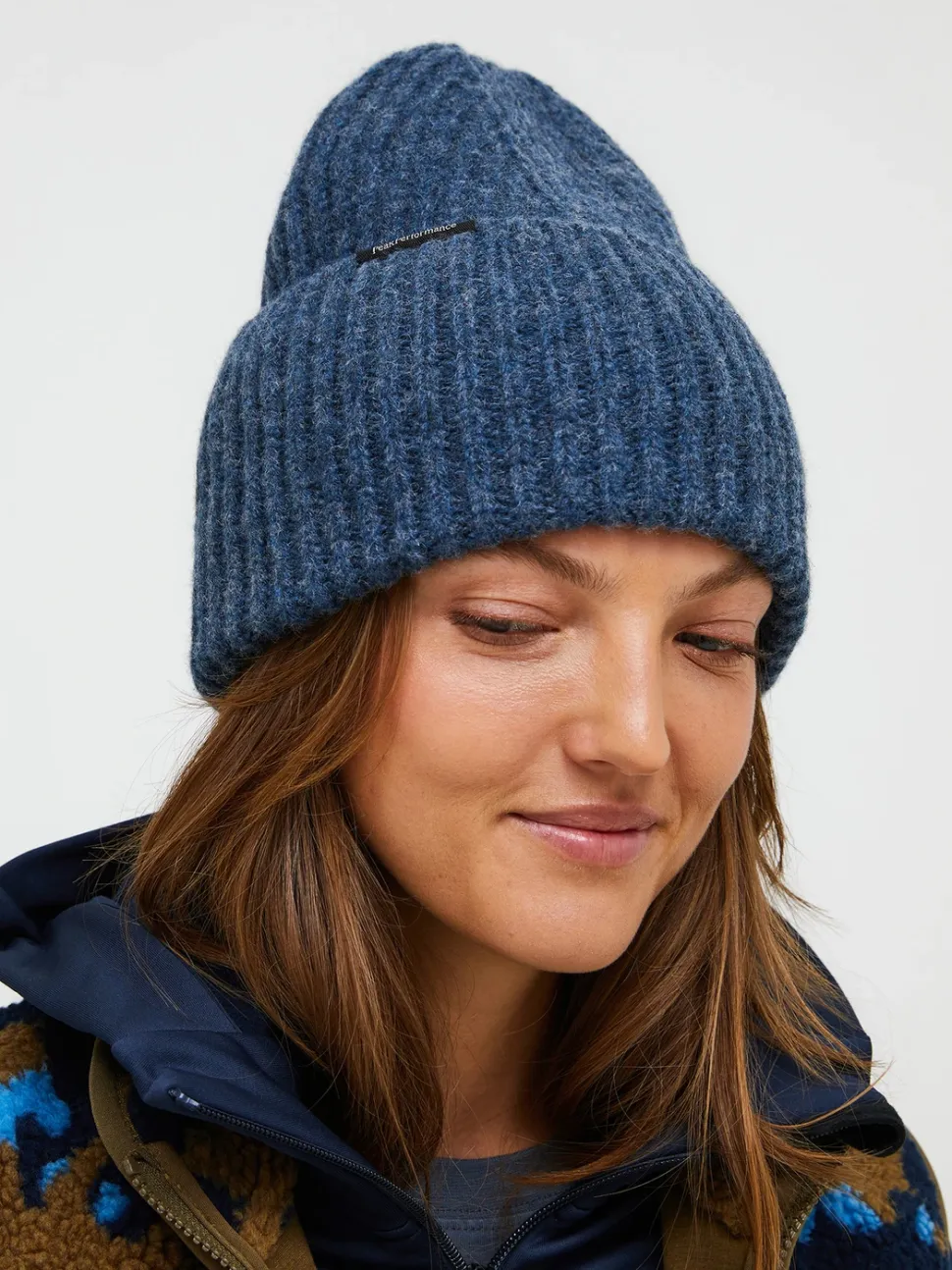Lämmin ja muhkea Peak Performance ribbipipo. Pipon käänteessä on Peak Performance logo.