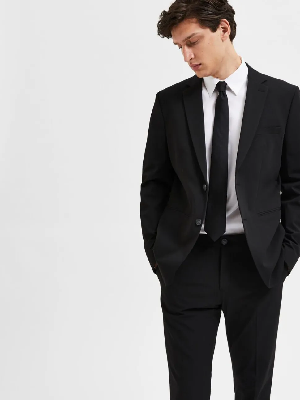 Miesten blazer. Selected Liam blazer sopii niin farkkujen kanssa kuin puvuntakiksi. Takki on kevyttä, mutta laadukasta, kierrätettyä viskoosisekoitetta ja se on kokonaan vuoritettu. Kiinnitys kahdella napilla, läppätaskut edessä sekä povitasku.