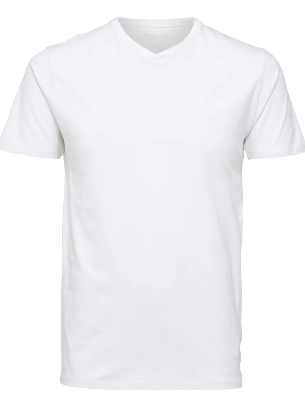Miesten t-paita. Selected Homme basic t-paita luomupuuvillaa. Joustavaa materiaalia, V-pääntie.