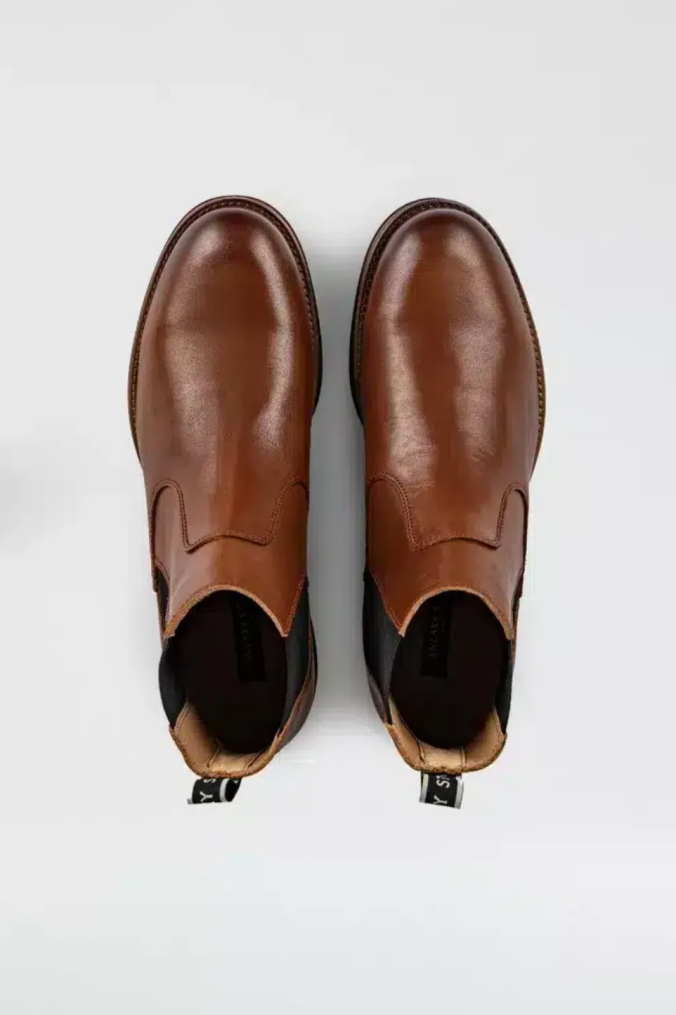 Laadukkaat Sneaky Steve chelsea -nahkakengät. Kengän varsissa joustavat kuminauhat pukemista helpottamaan. Kestävä kumipohja.