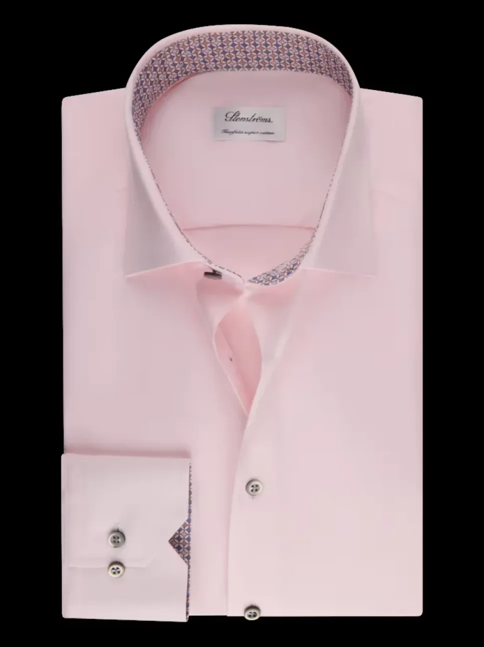 Vaaleanpunainen Stenströms fitted -kauluspaita kontrastikauluksella.