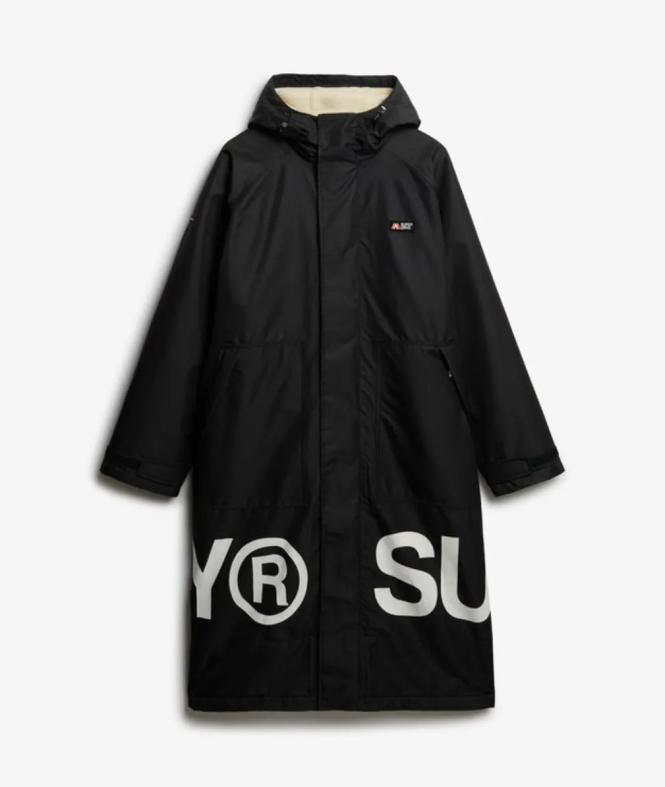 Pitkä, teddyvuorellinen Superdry takki.