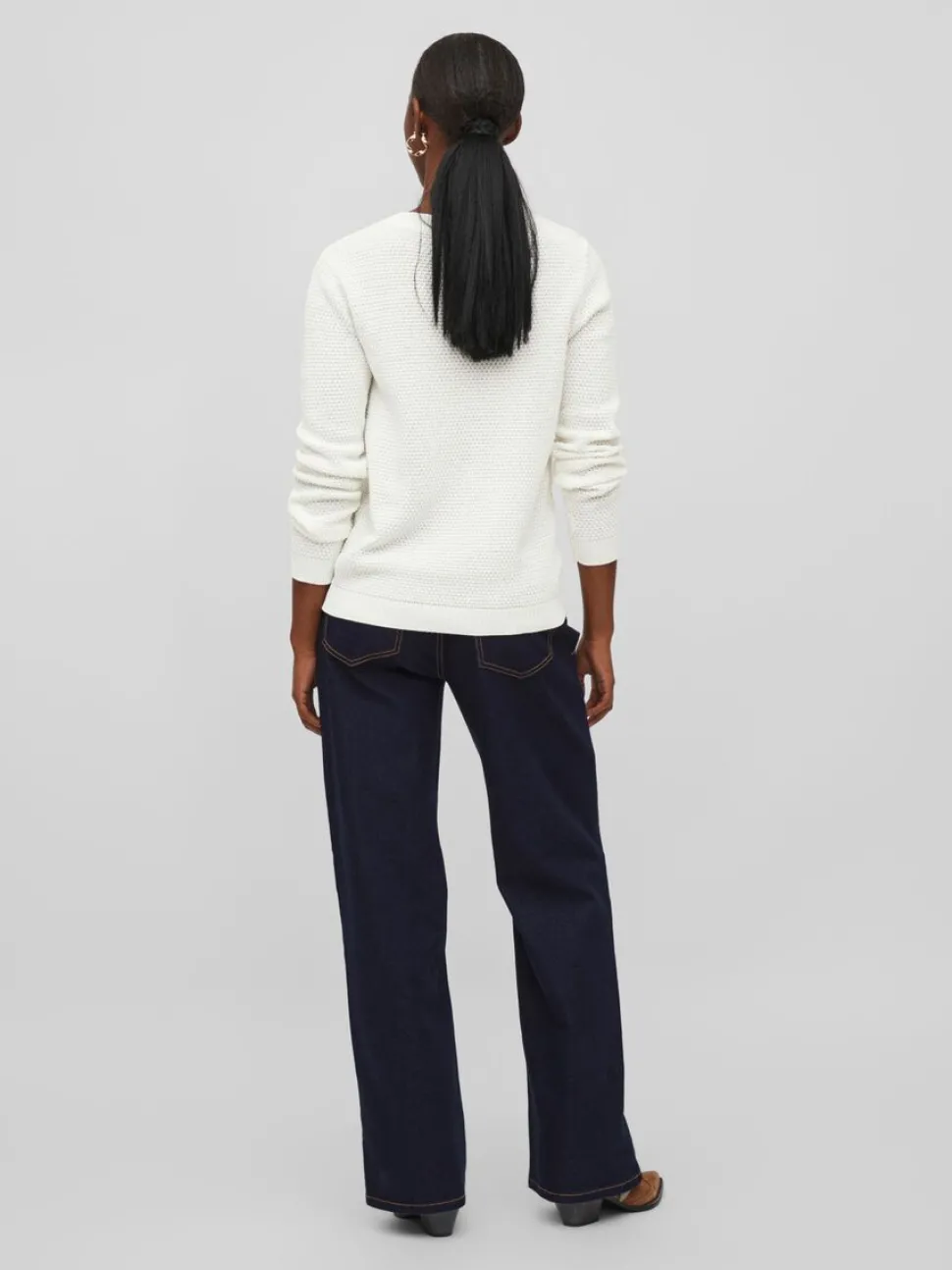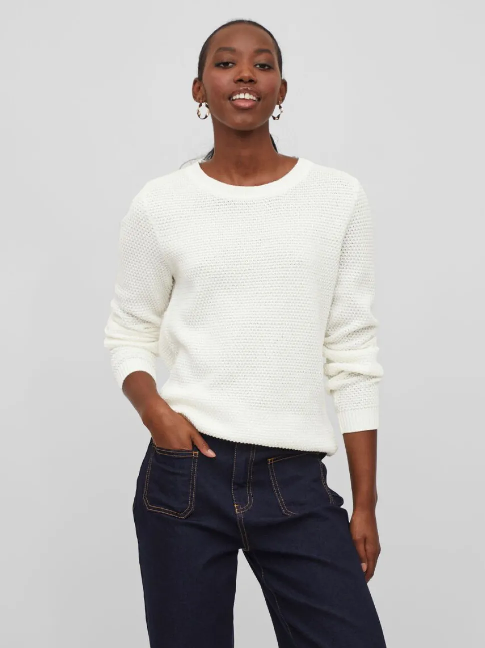 Naisten neule. Struktuuripintainen Vila neulepusero puuvillaa. O-pääntie.