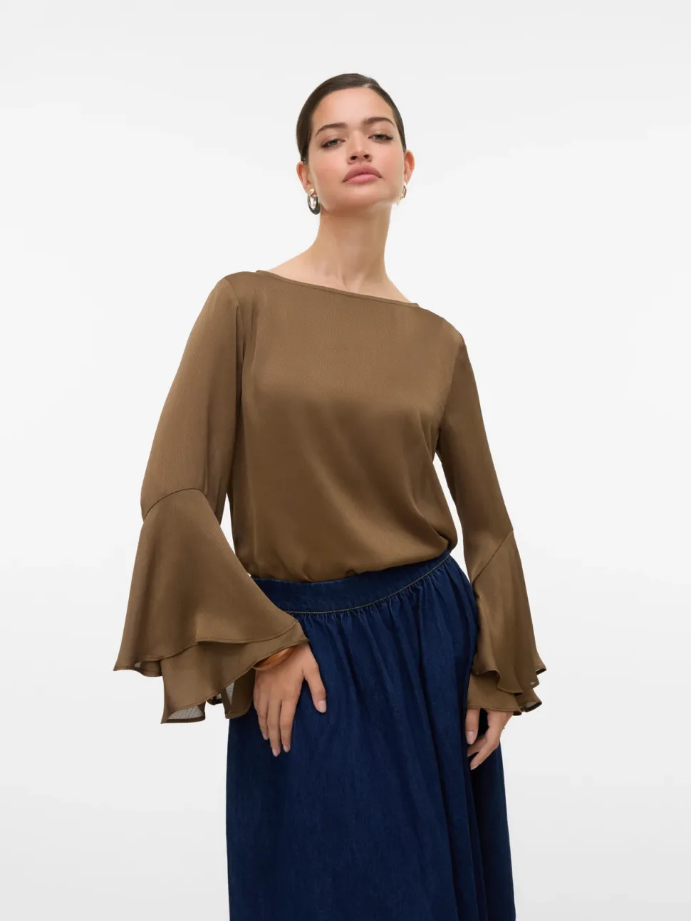 Kaunis Vero Moda toppi. Laskeutuva materiaali, leveät hihat.