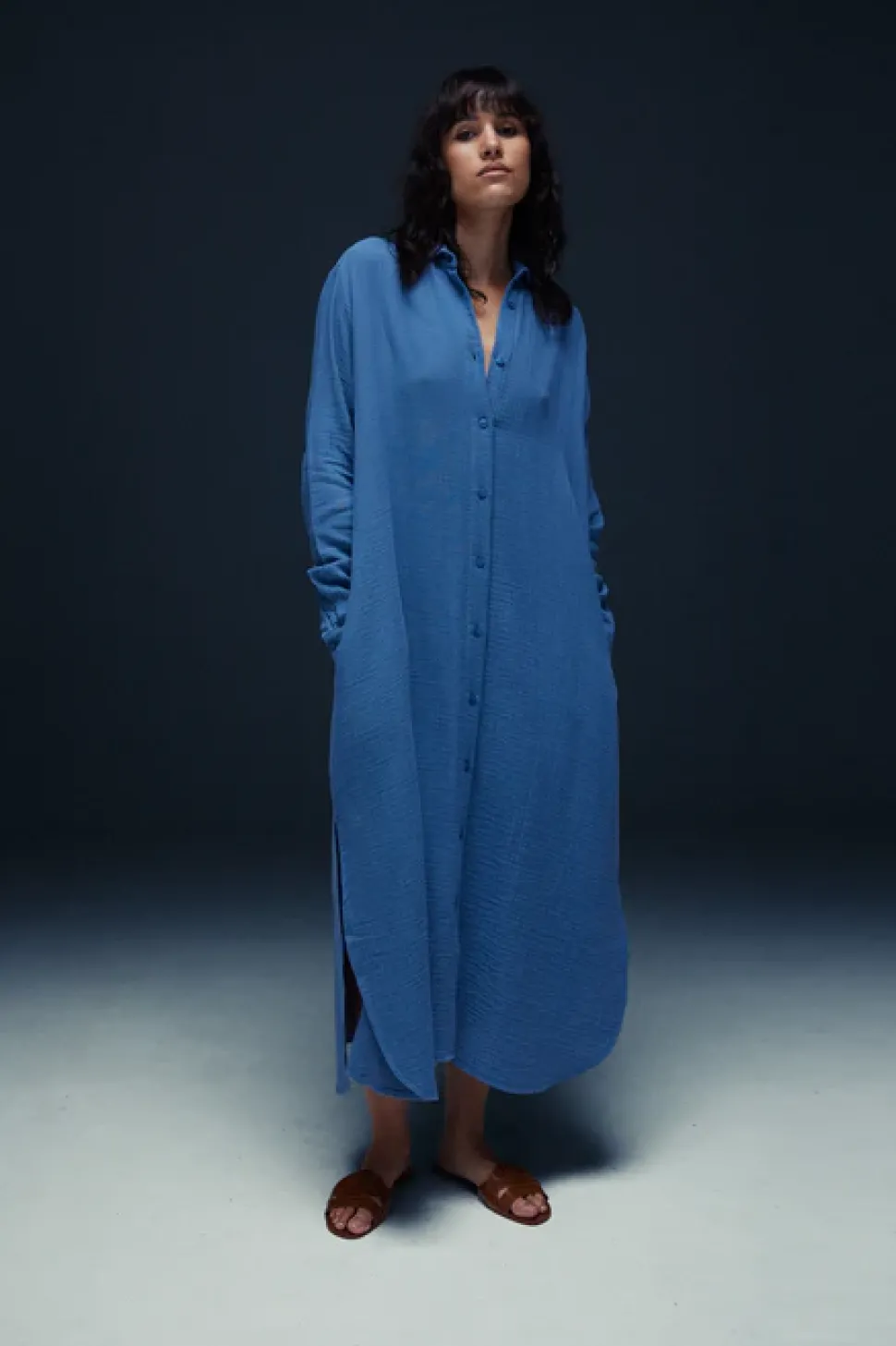 Äärimmäisen pehmeä crinklattu puuvillamekko.
