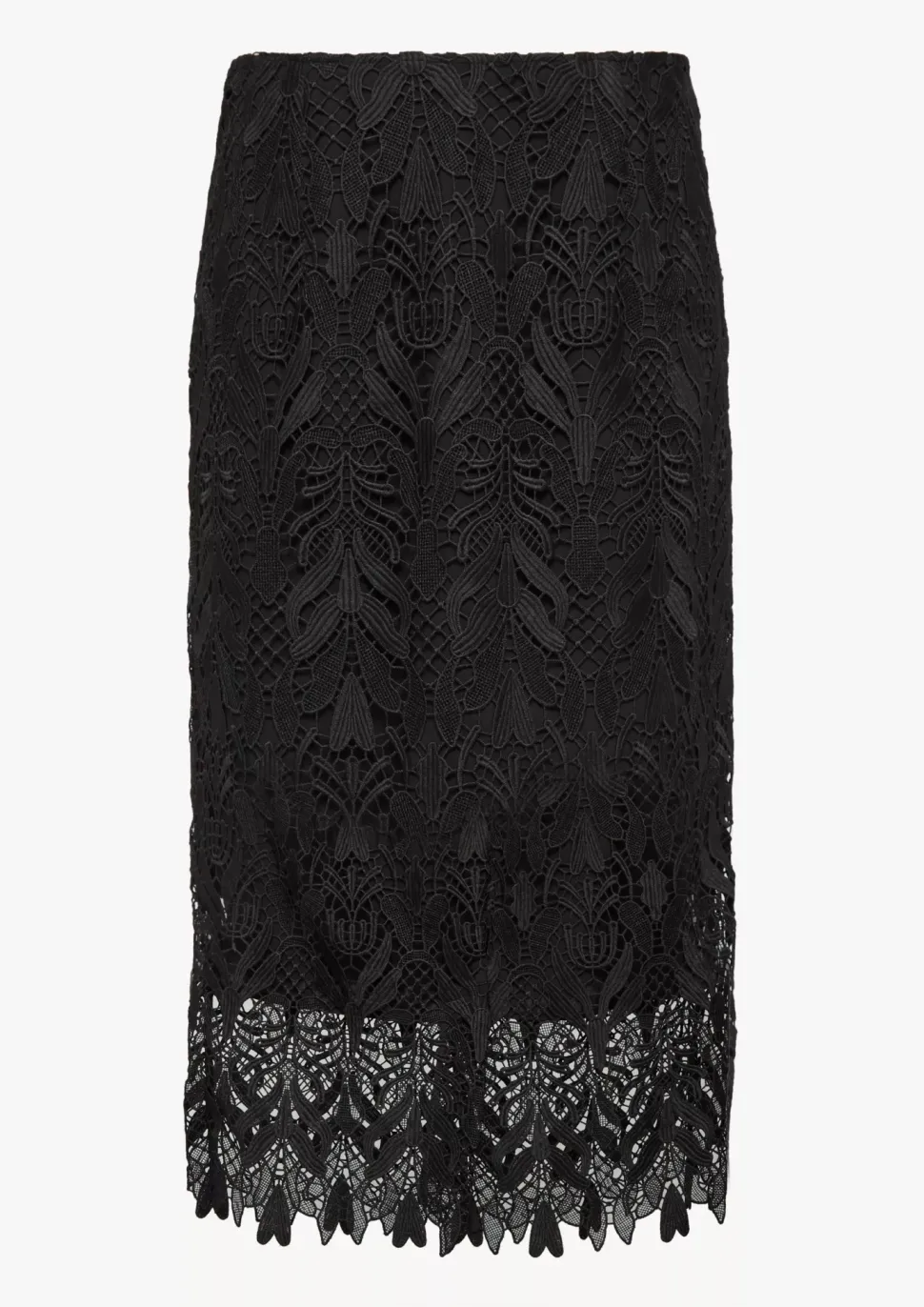 Tyylikäs Comma, pitsihame. Läpikuultva helma. Vuoritettu yläosa.