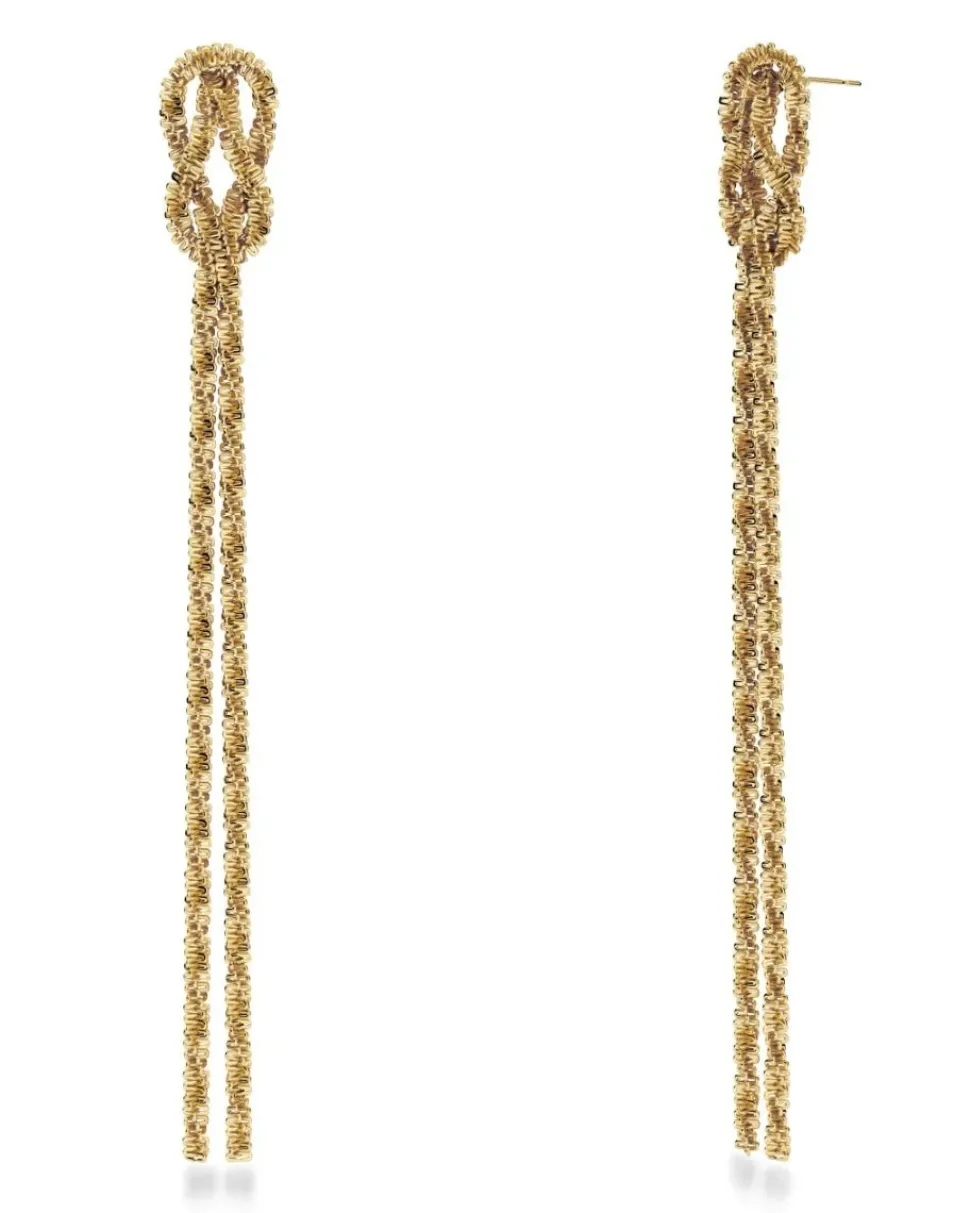 Edblad Tinsel Festive -korvakorut ovat todelliset shoulder dusters -korut pitkine ketjuineen, jotka kietoutuvat yhteen elegantin solmun muodossa.