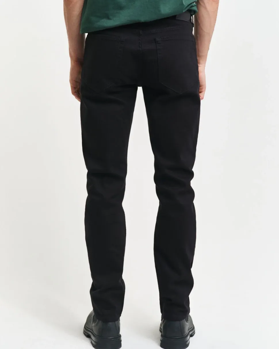 Pitkäkestoinen Stay Black ‑väri säilyy haalistumattomana monien käyttö- ja pesukertojen ajan. Regular fit ‑mitoitetuissa farkuissa on normaali vyötärö, kapea lantio ja normaali mitoitus lahkeissa. Farkuissa on klassinen viisitaskumalli, GANT-varsinapit ja -niitit, vetoketjusepalus ja takana vyötäröllä nahkainen logomerkki.
