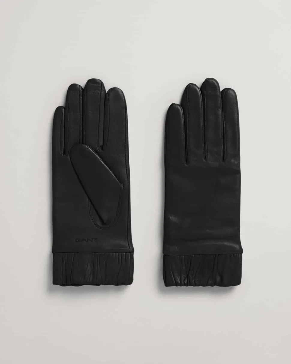 Kauniisti ranteista rypytetyt Gant Woman nahkakäsineet.