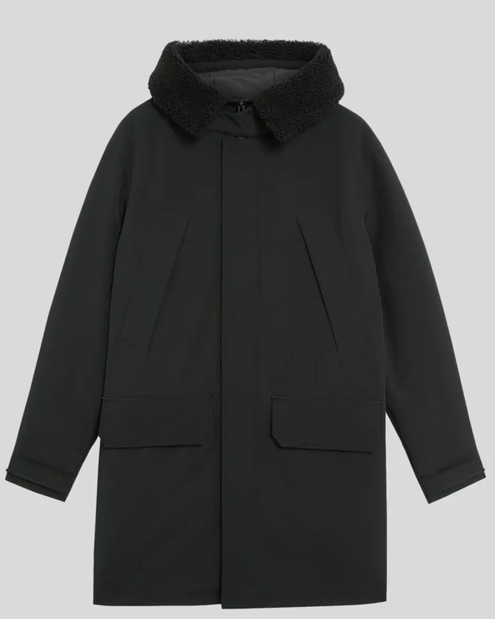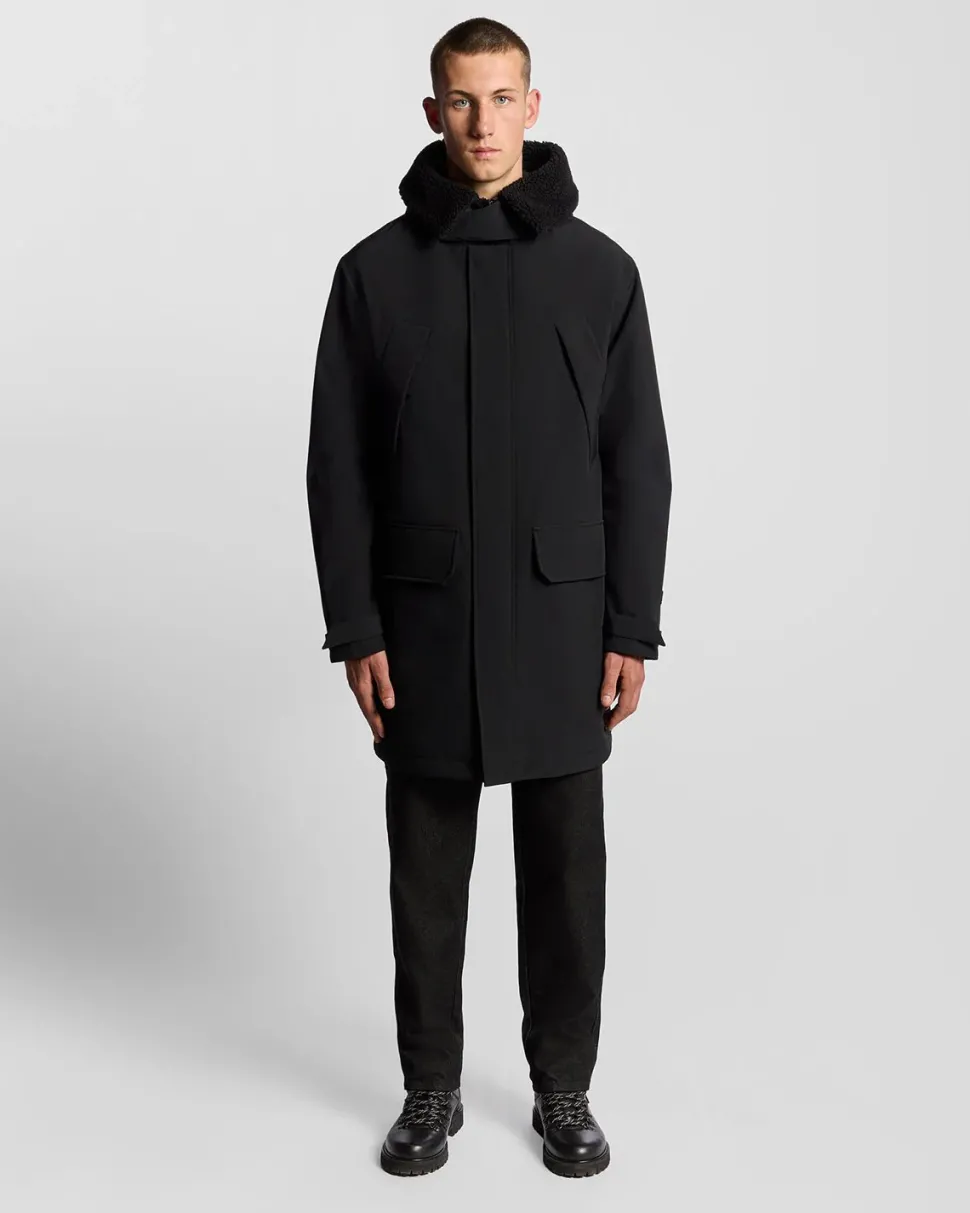 Lämmin Lyle & Scott talviparka keinokarvakauluksella.