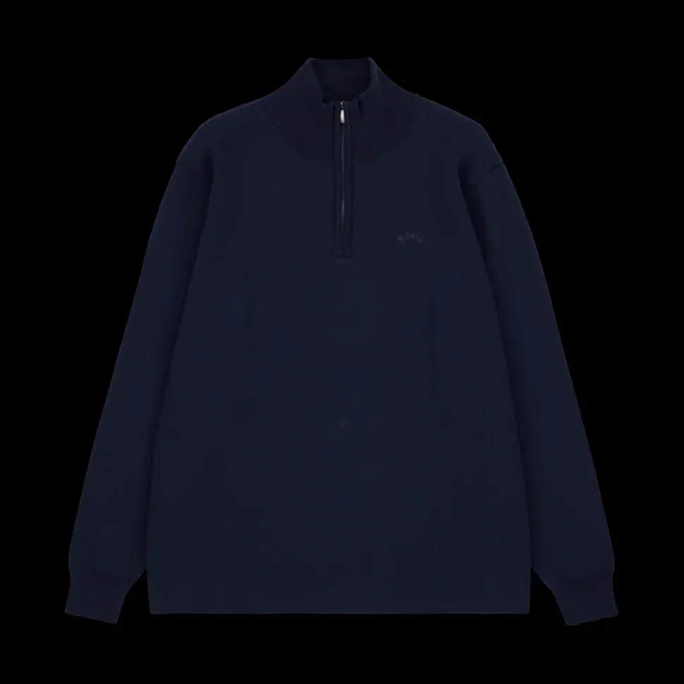 Luomupuuvillainen Makia vetoketjuneule. Rinnassa brodeerattu Makia logo.