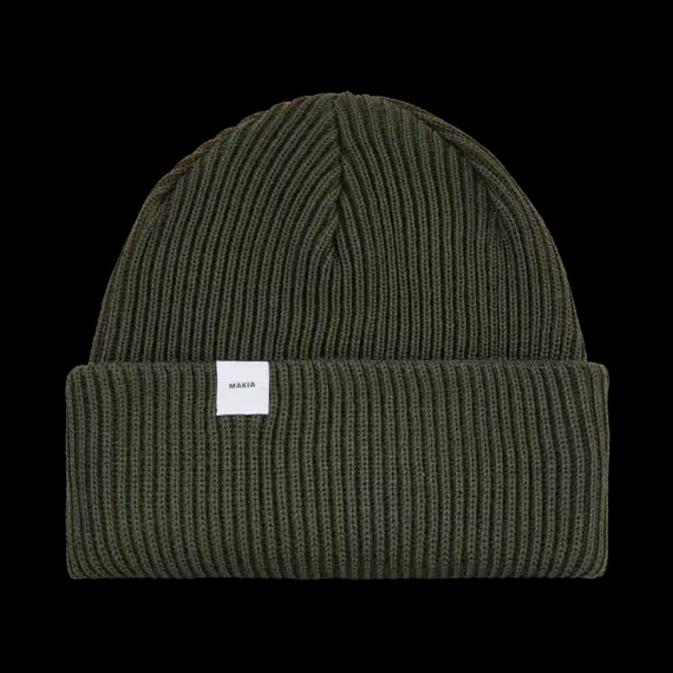 Lämmin Makia merinovillapipo on valmistettu Suomessa. Ribattu pipo on 100% Italialaista merinovillaa. Käänteessä Makia logo.