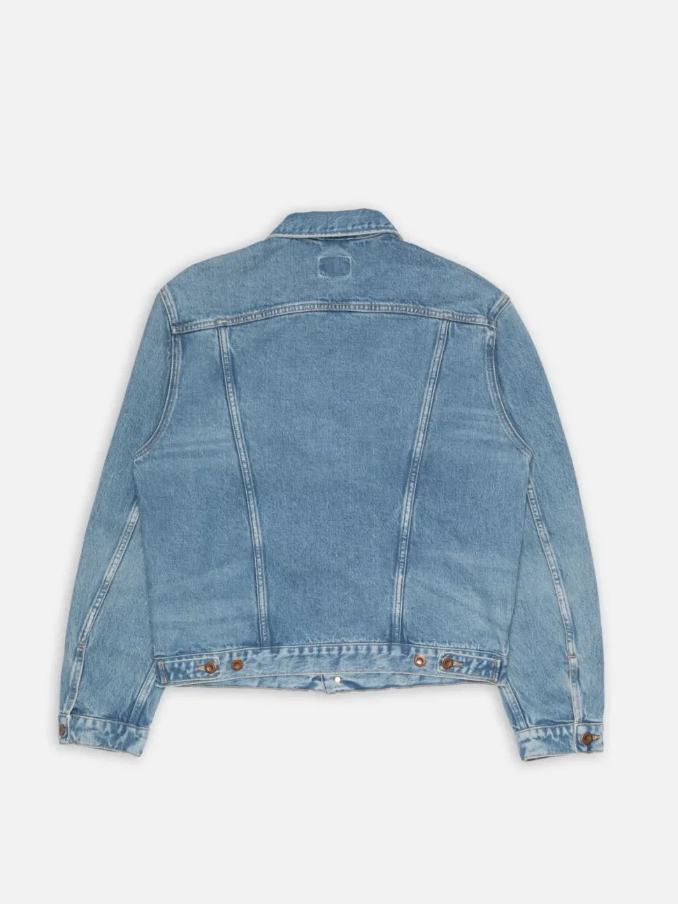 Kestävä Nudie Jeans farkkutakki luomupuuvillaa. Klassinen farkkutakkimalli vaaleassa farkkupesussa.