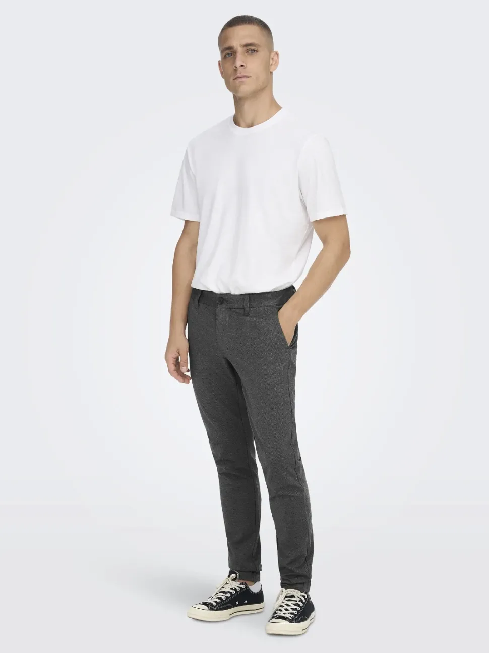 Siistit Only & Sons slim fit -housut. Housuissa on miellyttävän joustava materiaali, kapeat lahkeet, sivutaskut sekä napilliset takataskut. Housut sopivat loistavasti niin arkeen kuin työhön.