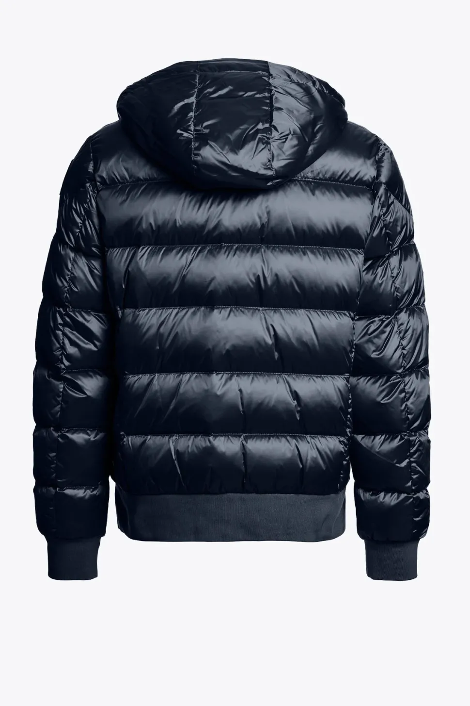 Tummansininen bombermallinen Parajumpers untuvatakki.