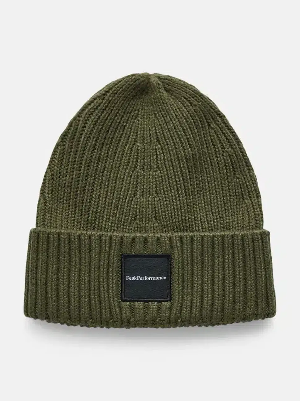 Lämmin Peak Performance ribbipipo. Pipon käänteessä Peak Performance logo.