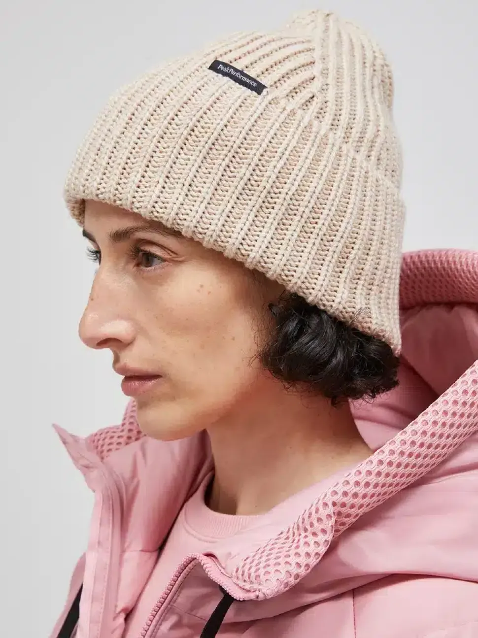 Lämmin ja muhkea Peak Performance ribbipipo. Pipon käänteessä on Peak Performance logo.