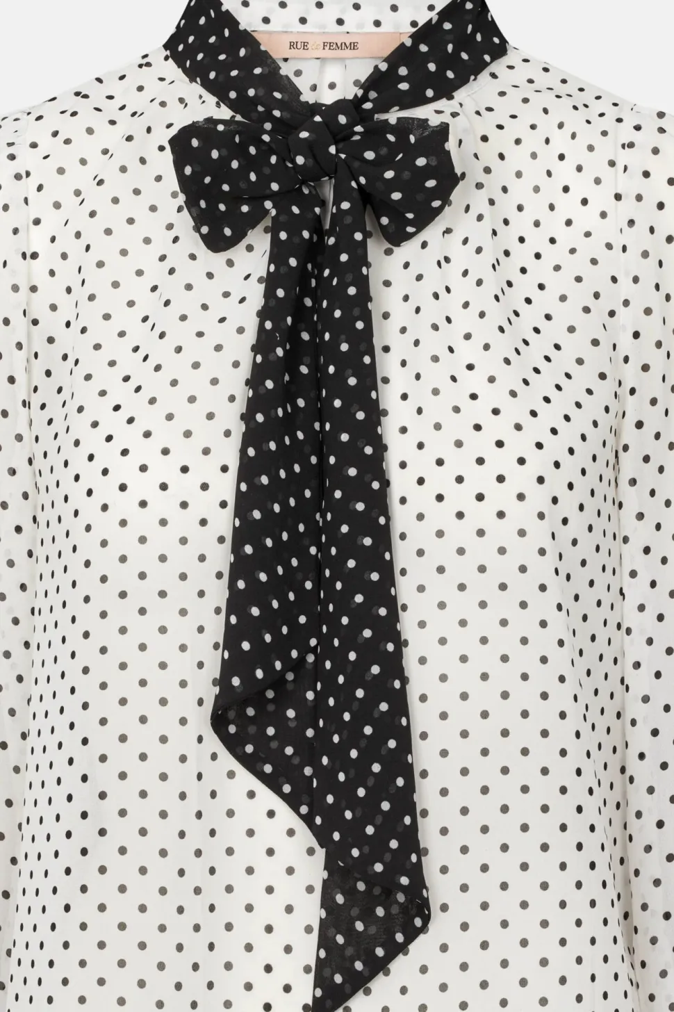Rue de Femmen naisellinen pusero, jossa on kauniit yksityiskohdat ja klassinen istuvuus.