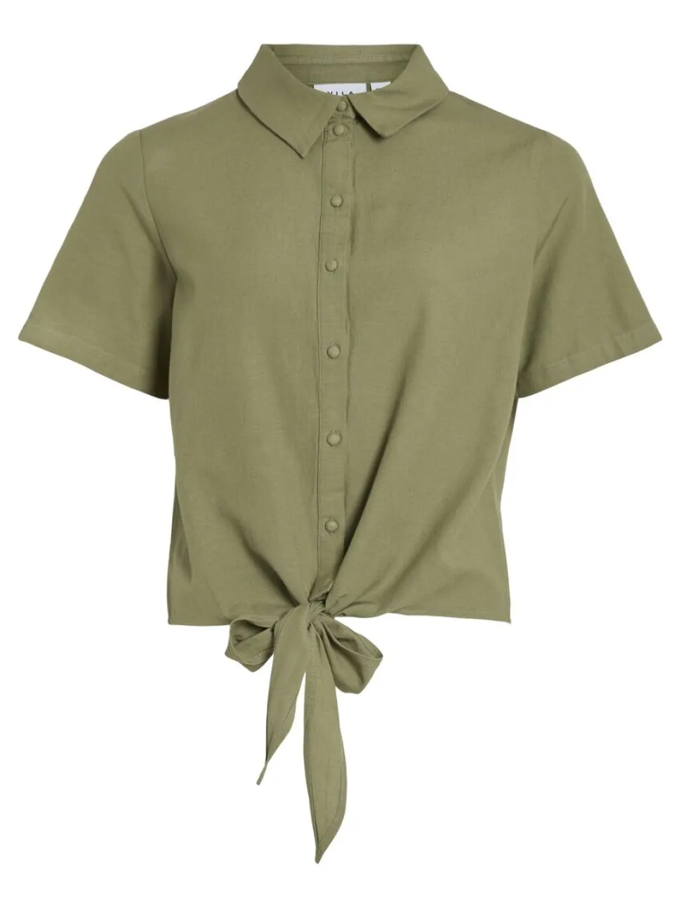 Edestä solmittava lyhythihainen Vila pellavasekoitepaita.
